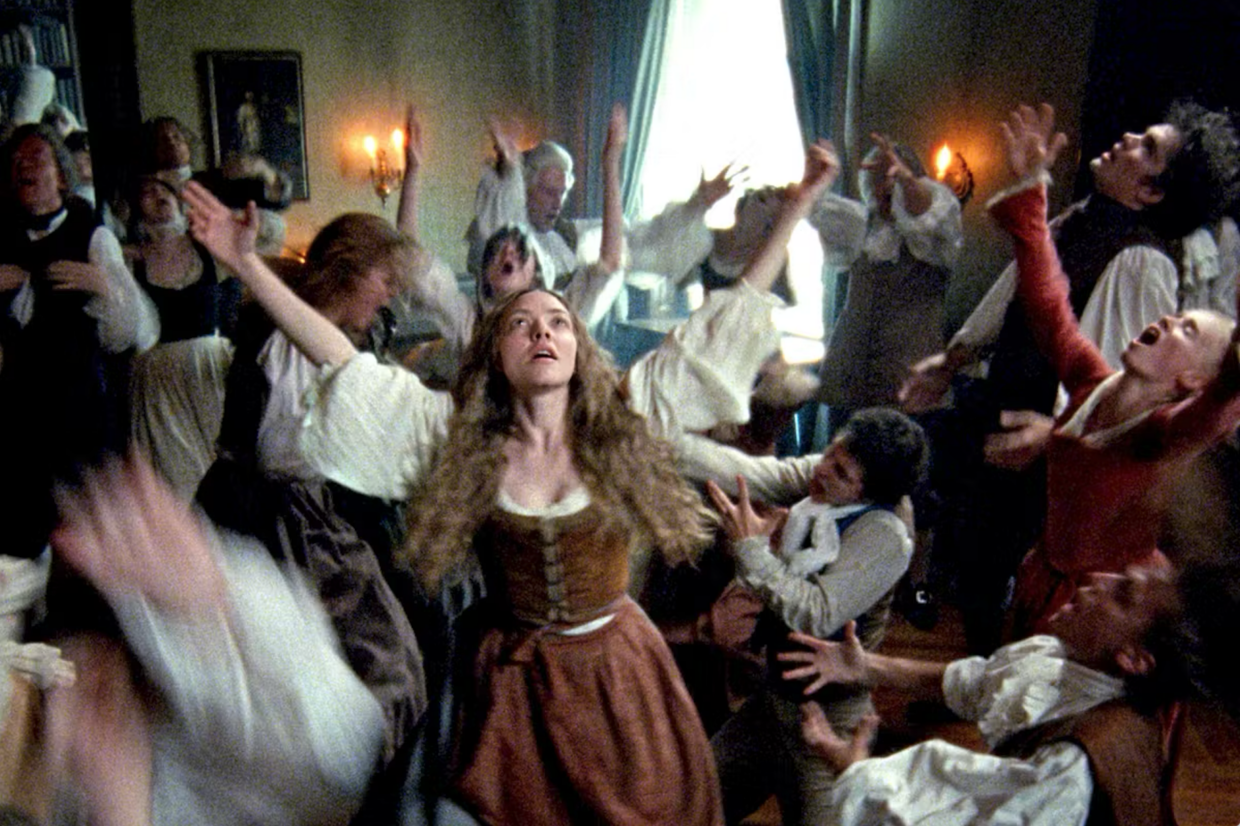 L’actrice est insupportable de « je suis aware et pleine de force féminine » . Rien ne « passe » des acteurs car ils sont écrasé par l’illustration. Le film sur des puritains essaye de ne pas l’être (montrer le petit frère pede qui renonce au joli garçon et se coupe les cheveux; la montrer nue, fesse fouette par son mari, sein giclant du lait sur son nouveau né, dénudée à la fin par les méchants qui ne la voit pas femme) tout en étant de leur côté. C’est assez sage. Et les séquences dansées de possessions, où la caméra se pose ou tourne faisant face a la régularité des gestes (artificielle).